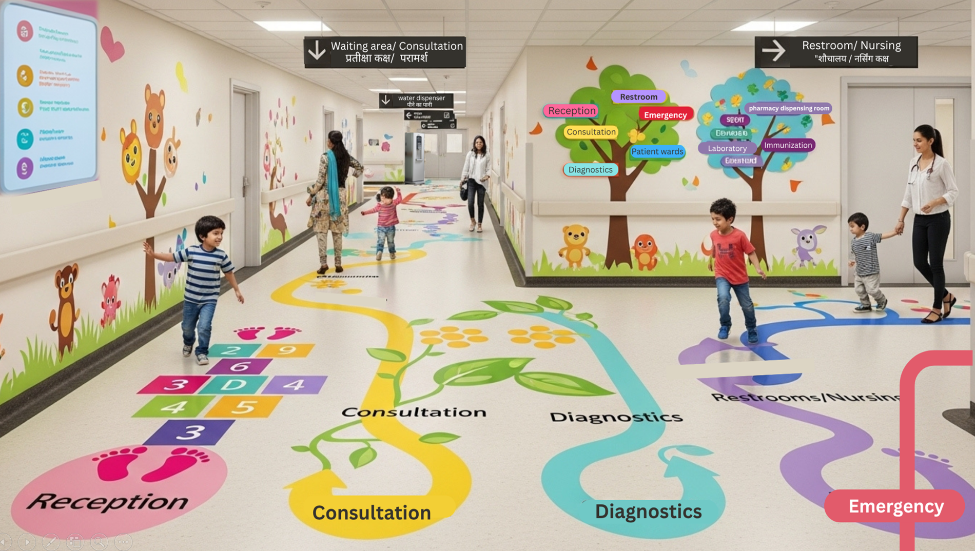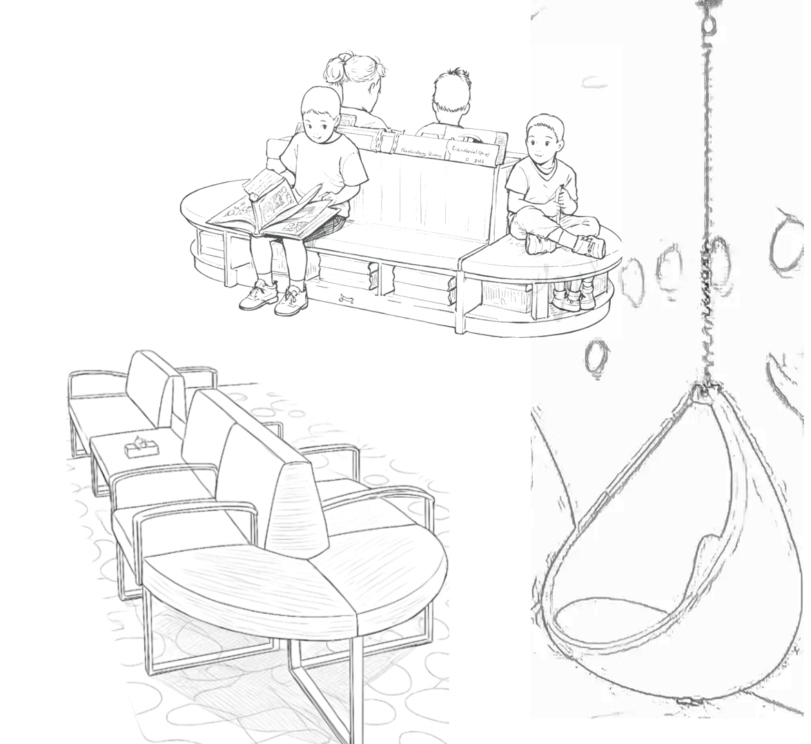A walkthrough of the redesigned children’s hospital waiting area, paired with meditative music to reflect the calming, supportive atmosphere envisioned in the design.” Best experienced with sound