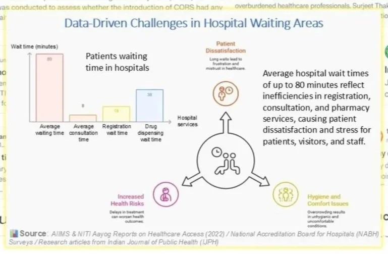 Prolonged waiting times, compromised quality of care, and overburdened healthcare professionals are prevalent issues. Additionally, 80% of hospital areas are not designed for patient comfort or to reduce stress for patients and caregivers.